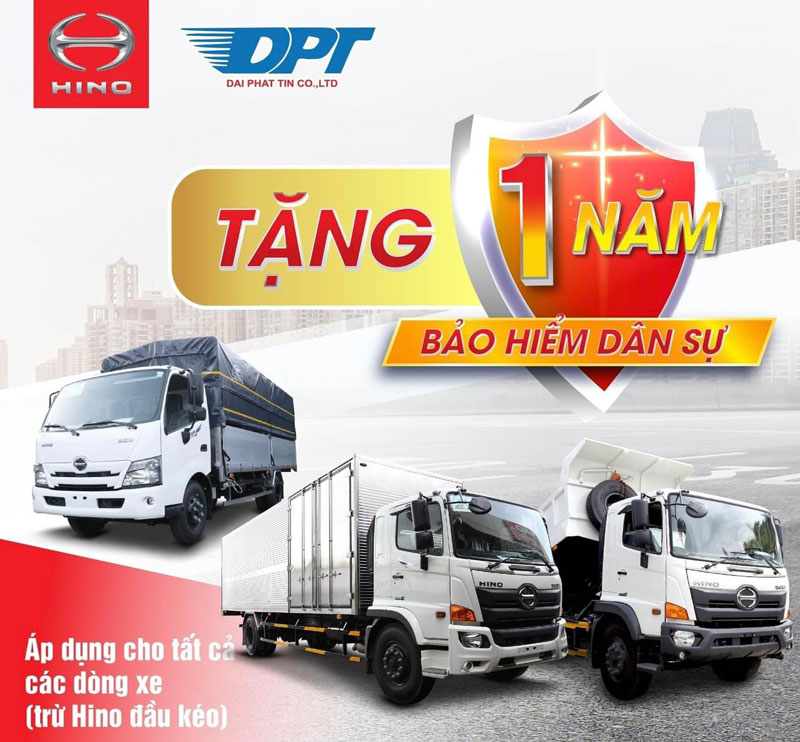 - Tặng bảo hiểm trách nhiệm dân sự 1 năm cho khách hàng khi mua Xe Tải Hino tại Chuyên Xe Tải.